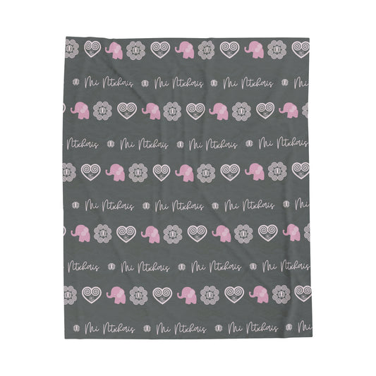 Gray Hmong - Mi Ntxhais (Girl) Velveteen Plush Blanket